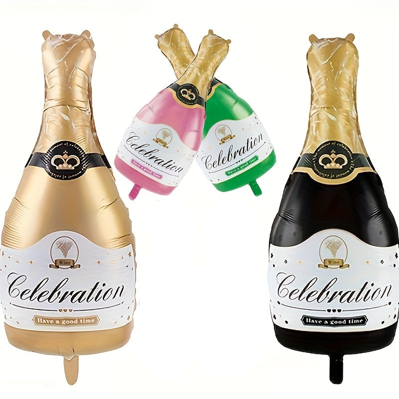 Elevate celebrations with this 38-inch Gold Creative Champagne Bottle-shaped aluminum foil balloon. Its sturdy, high-quality material ensures lasting decoration, while the realistic design adds a sophisticated touch to any event. Perfect for parties, weddings, and special occasions, this balloon combines eye-catching appeal with easy inflation and durability.