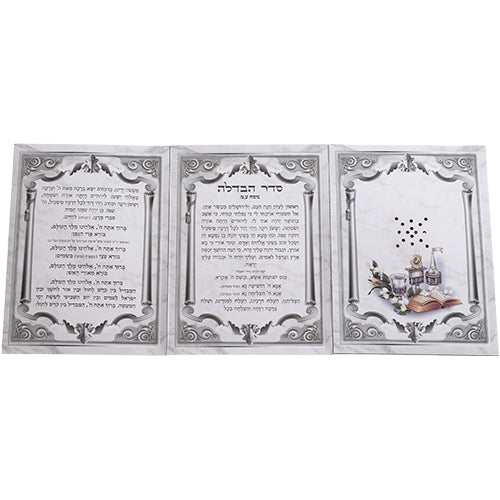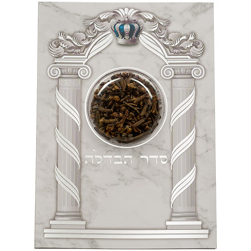 This cardboard Havdalah blessing card, measuring 17.5 by 13 cm, features an elegant design accompanied by fresh basil besamim. It offers a traditional way to enhance your Havdalah ceremony, allowing you to hold the fragrant basil while reciting the blessings, connecting sensory experience with spiritual practice. Its compact size makes it convenient for use and storage, perfect for both personal and communal observance.