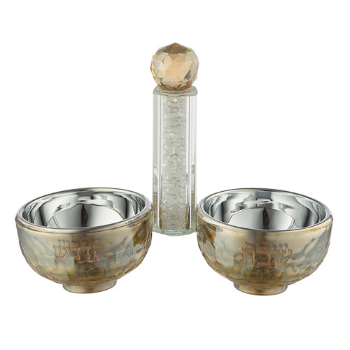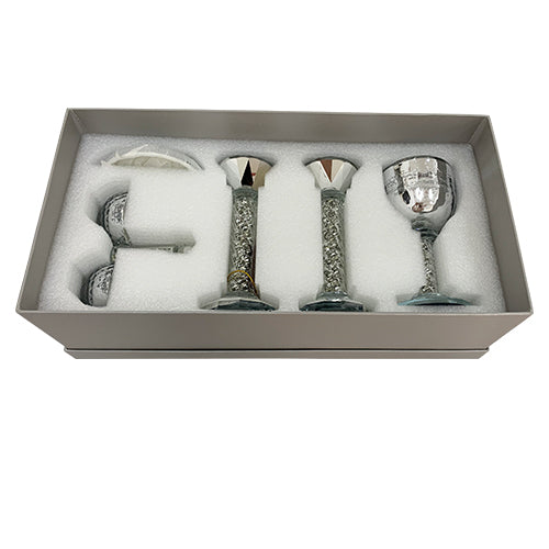 Elevate your dining experience with this exquisite crystal set featuring elegant candlesticks, a refined Kiddush cup, and a stylish salt and pepper stand adorned with natural stones. Crafted for both beauty and function, each piece enhances your table setting with a sophisticated sparkle, perfect for special occasions and meaningful rituals. The combination of crystal clarity and stone accents offers a timeless aesthetic that complements diverse décor styles while ensuring durability and lasting charm. Ideal for those who appreciate artistry and tradition in their tabletop accessories.