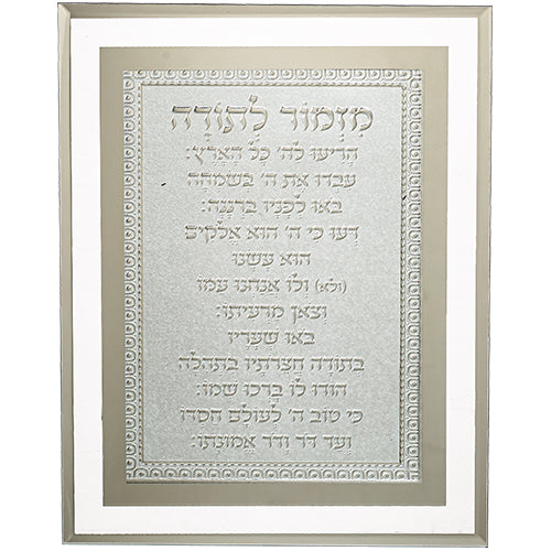 This framed "Mizmor L'todah" blessing, measuring 17 by 22 cm, is a refined piece that combines meaningful scripture with elegant presentation. Designed for display, it serves as a constant reminder of gratitude and devotion. Its compact size allows for versatile placement in home or office spaces, enriching the environment with spiritual significance and aesthetic appeal.